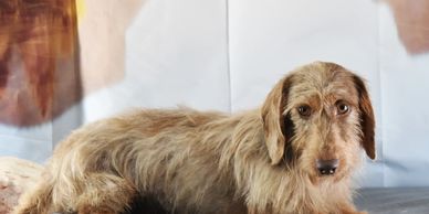 AKC wild boar female Dachshund. She is a wire hair that is always on the hunt for a snack or lap to crawl into. This little girl has an excellent nose on her and we are sure if given a chance would track wounded game.