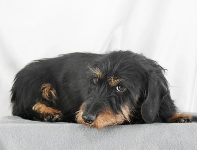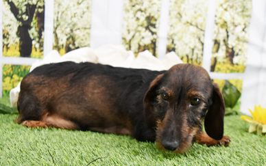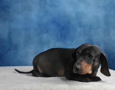 Pearl is an AKC black and tan Russian longhair miniature dachshund. She is sweet and reserved. She loves to run up to anyone, roll over, and get her belly rubbed.